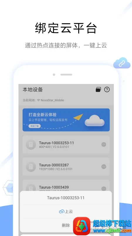 屏体管理:适用于局域网内对控制卡搜索连接,具备快捷配屏、实时监控、播放管理、亮度调节、云平台绑定等功能。