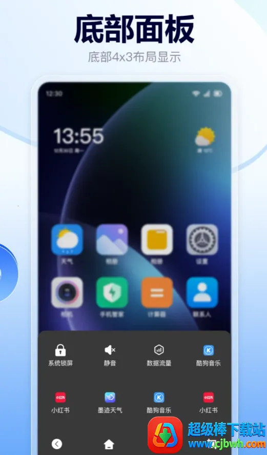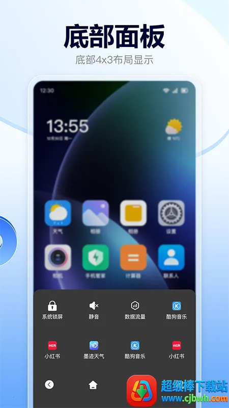 3. 布局多样,内置场景识别系统,根据应用或状态切换不同菜单布局。