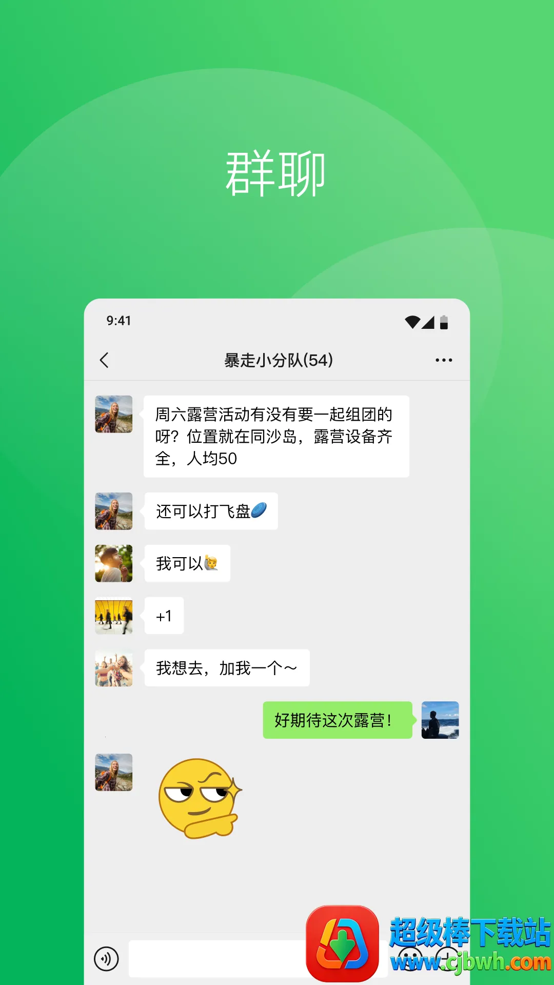 2、便捷群聊互动:可组建高达500人的群聊,9人实时视频聊天也不在话下,方便与多人交流沟通。