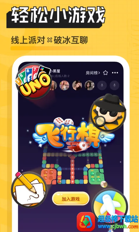 3. 提供丰富社交场景,多人语音聊天室可连麦交友、处CP,让你结识更多有趣灵魂。