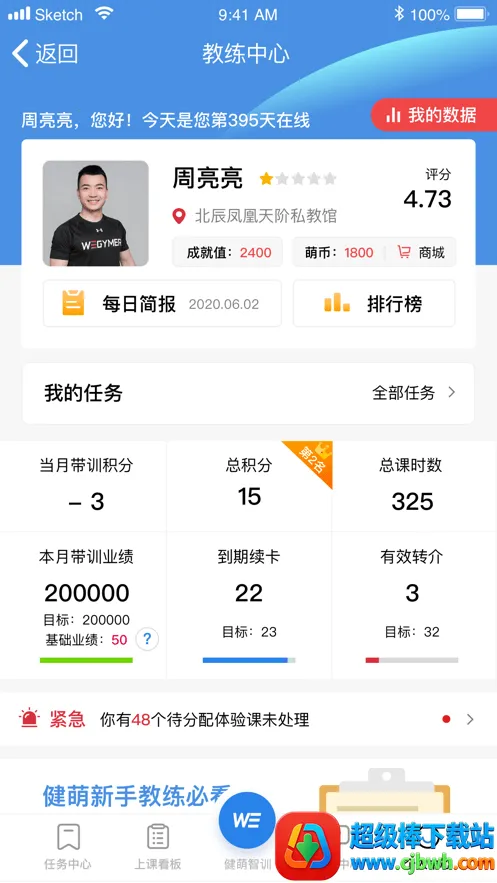 教练数据:教练能查看自己的数据,如课时和学员数量等,获取更多数据以便更好地规划工作。