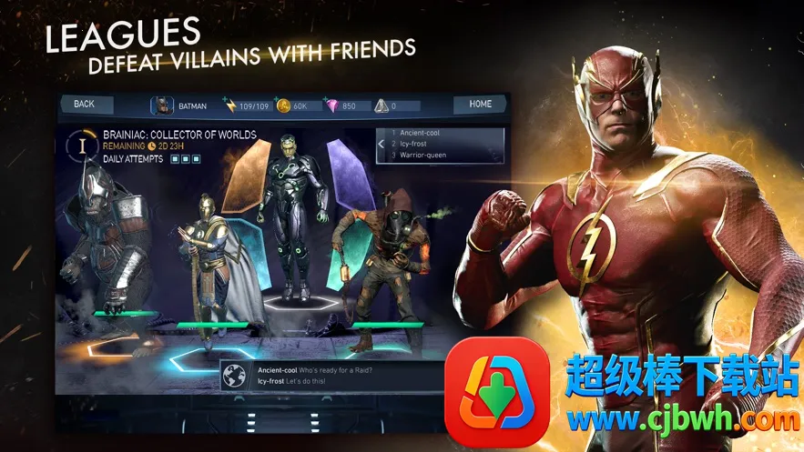 2. 拥有丰富多样的角色,像超人、蝙蝠侠、绿灯侠、闪电侠等,每个角色都有独特技能。