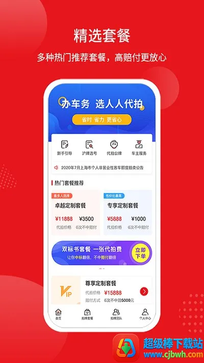 人人代拍是专注代拍服务的应用,提供一站式车辆拍卖体验。有独特定制策略与专属服务,多种套餐推荐,严格认证考察确保安全。价格低至5000元,1次不中赔付1100元,拍中付款,精英团队中标率领先。