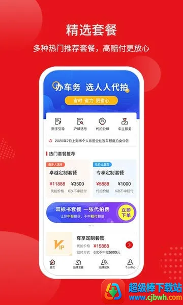 智能推荐:根据用户需求程度,推荐相应代拍套餐,直接下单即可等待车牌拍卖。