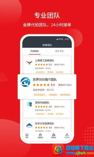 2. 高赔付保障:价格低至5000元,1次不中赔付7000元。去除中间黄牛,直接对接拍手,中标率常年稳定领先,大平台靠谱。