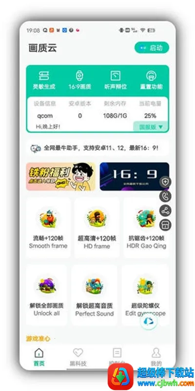 画质云超广角是一款游戏画质提升吃鸡助手,支持120帧超高清画质开启,一键解锁多种画质功能,能完美修改,带来不同体验,操作方便,兼容各型号手机,还有智能推荐等亮点特色。