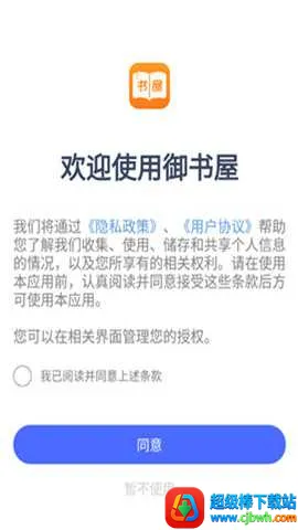 1.首先在这里下载安装“御书屋”,第一次进入到软件界面,我们需要阅读相应的隐私协议,如果觉得没有问题的话点击同意开始使用