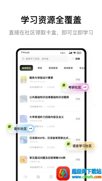 1. 全系统学习与复习:闪卡作为主要内容载体,内容短小精悍,方便利用零散时间学习,还提供7个学习模式,打通学练测评各环节。