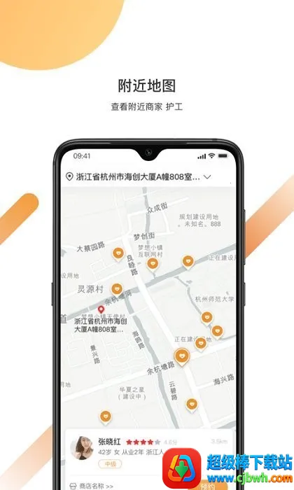 3. 人员信息清晰:可查看各个优秀护理员详细信息,包括年龄、从业年限、工作照等,还能在地图上查看到附近商家及员工信息,方便了解与联系。