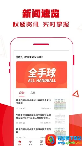 1. 公告通知:用户能通过公告查看最新手球信息,随时掌握动态。