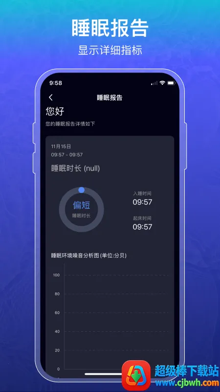 3、睡眠报告:显示详细指标,分析睡眠深度、入眠时间等多项内容,帮助用户调整作息,迎接更健康生活。