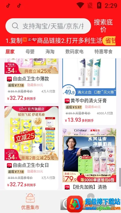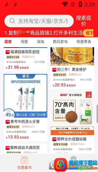 2. 优惠多多:含各大电商平台商品的大额优惠信息,购买商品可返现,领券购物更省钱。