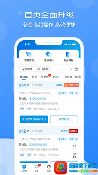 4. 功能丰富实用:全新订单管理界面提升接单效率,可查看库存、运营数据,控制营业时间,发布优惠券促进销售。