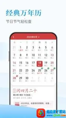 2. 万年历功能强大,提供每日宜忌、星座属相、放假调休等诸多信息,还有实用工具箱,像日期计算、公历农历转换等。
