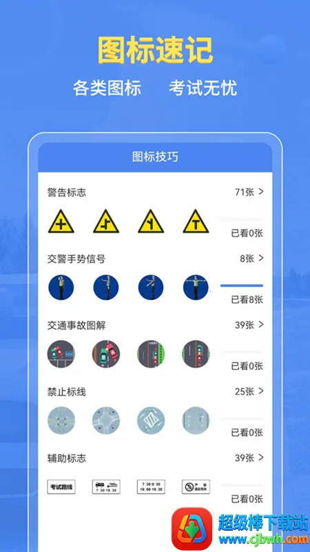 科目一至四全涵盖,科目一和四题库实时更新,提供专项练习及模拟考试等多种模式,助力强化记忆,提高通关率。