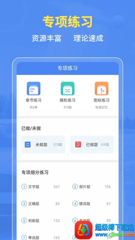 1. 科目一和四题库实时更新,有专项练习及模拟考试等模式,强化记忆提通关率。