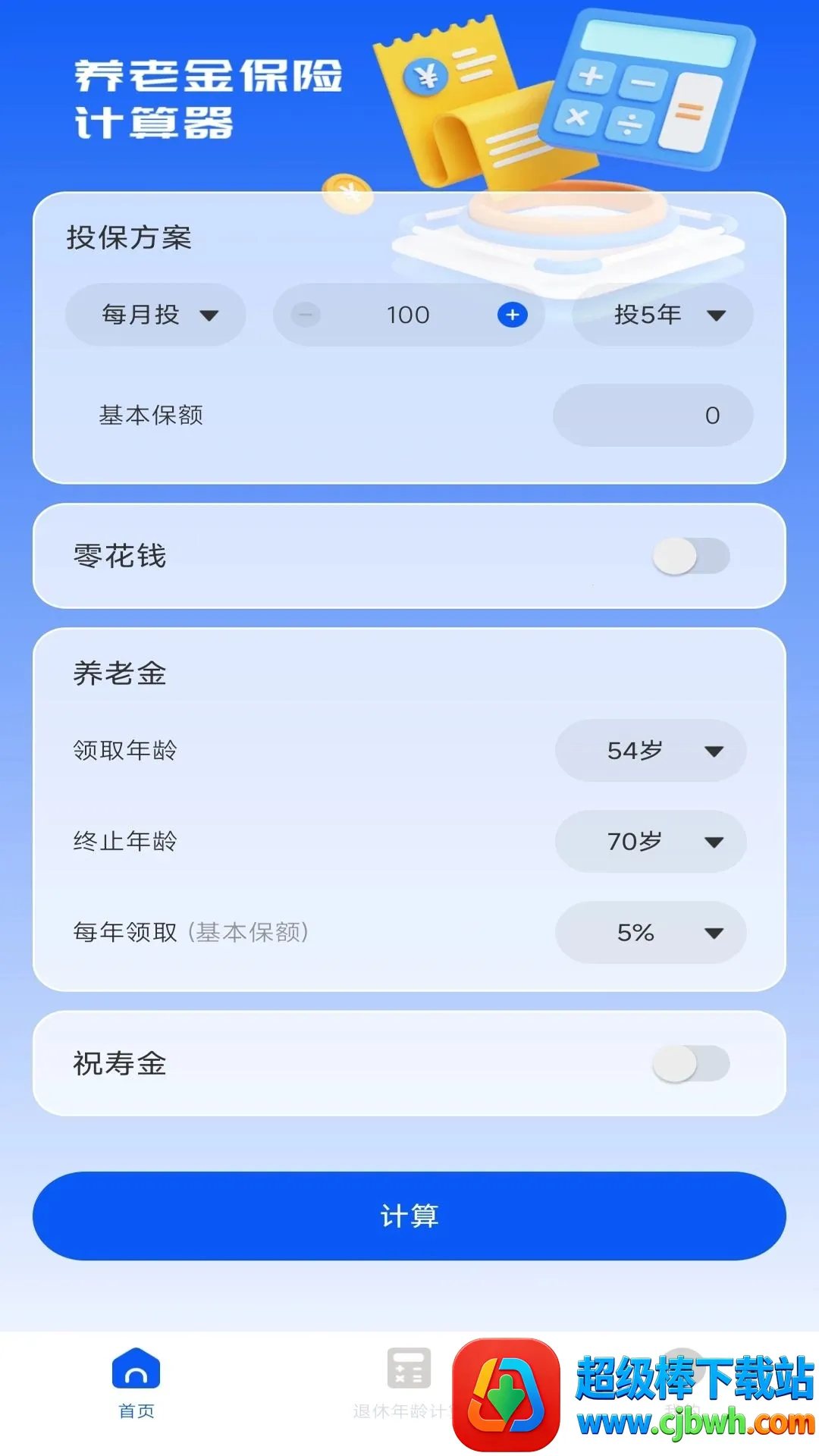 养老保险计算器安卓版是一款专业的税费计算 app,能精准计算养老金。详细介绍计算方式,助用户了解养老资金政策。受多种因素影响养老金高低,输入数据可快速得出结果,还有投保方案预计养老金及相关商品。
