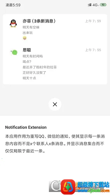 通知扩展2026下载安装,支持QQ、微信和TIM安卓客户端。授予相关权限后可重写通知,显示详细内容,设置后台策略防应用被杀。还能过滤通知、自动回复,有深色等模式,修复了一些bug,快来体验。
