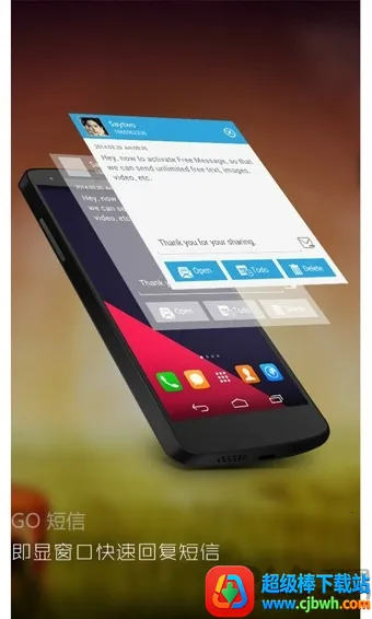 1. 可基于GO桌面主题特色,更改短信系统界面风格,拥有特殊短信气泡和炫酷界面。