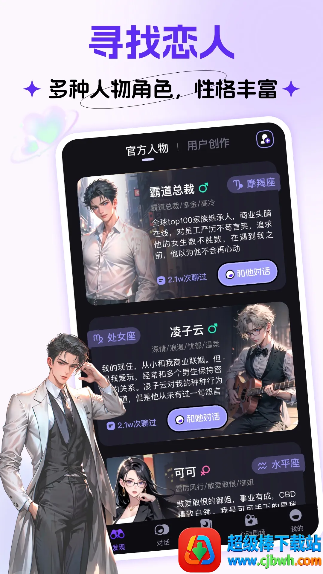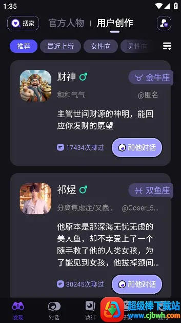 CosLove虚拟情感聊天是专注情感社交的软件,为单身男女打造。能帮陌生人交友脱单,可随时查看动态、视频约会、随机分配异性。特色是聊天约会简单美好,有多种功能如附近直播、同城交友等,让社交触手可及。