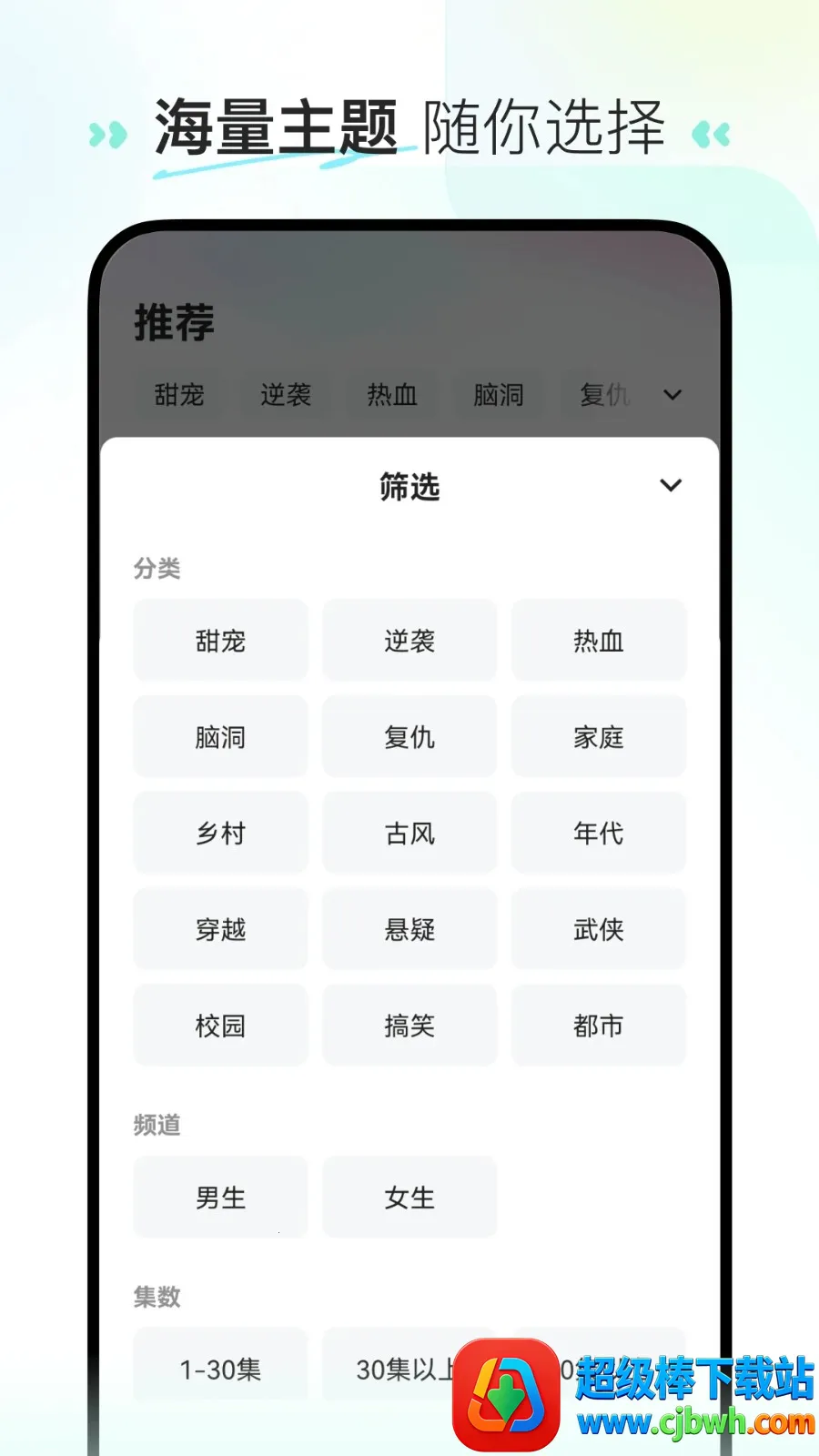 喜番短剧是一款专注于免费手机追短剧的App,为用户提供了各类最新搞笑的短剧资源,涵盖番剧热血都市校园搞笑乡村脑洞和修仙等多种类型。平台汇聚了大量精品优质的短剧资源,所有视频都以高清画质呈现,无任何广告弹窗。用户还可以根据个人喜好选择各类短剧进行观看,点击界面右侧扩展按钮,可按类型剧集等条件进行筛选,找到更符合口味的内容。在观看过程中,点击左下角选集按钮即可切换不同剧集,选集时可点击收集合集将喜欢的短剧收藏起来,方便日后继续追看。已收藏的短剧可在收藏页面中查看,随时回看不遗漏任何精彩。总之,喜番短剧是一款非常不错的短剧观看平台,值得大家下载体验。