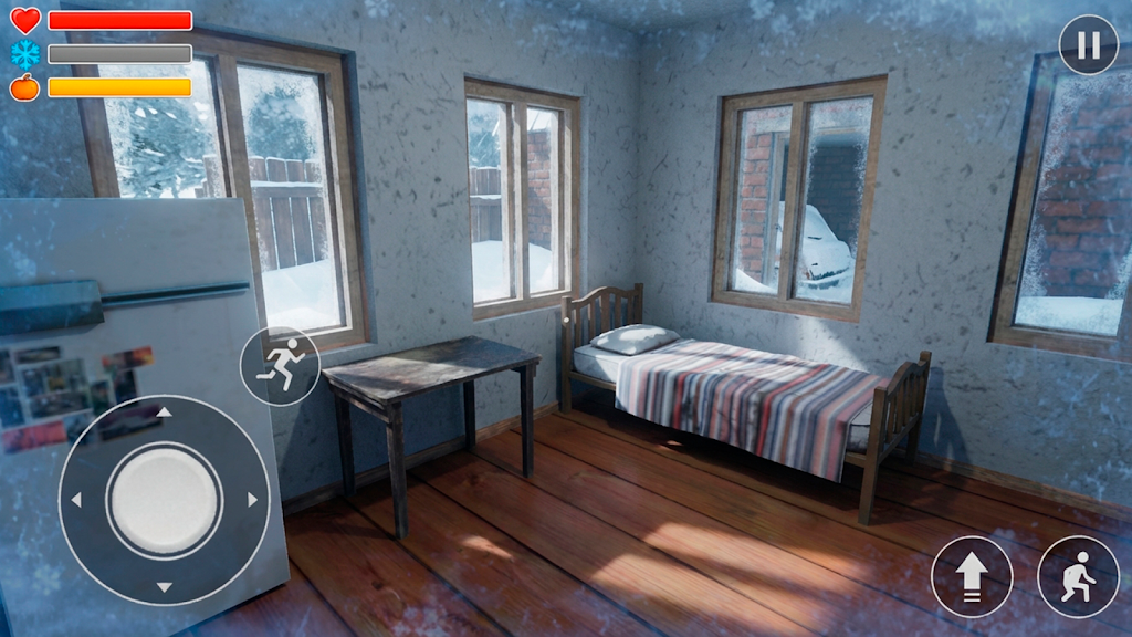 3. 严寒生存系统:左上角显示寒气值,越高屏幕冰冻特效越明显,进入小屋可降低,还需外出寻找资源维持生存。