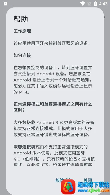 1、连接便捷:无需其他软件,仅需一台支持蓝牙的设备,就能轻松将 Android 设备变为远程键盘和鼠标。