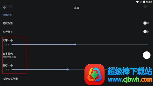3、用户还可以设置文字大小、文字颜色、图标大小等。