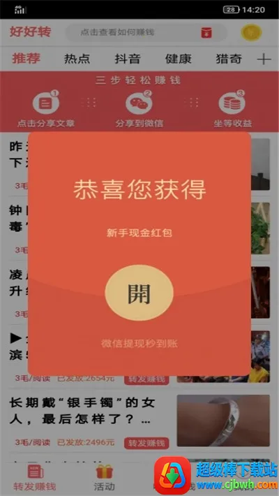 2. 奖励丰厚:分享文章能获丰厚奖励,阅读越多奖励越多,还有签到红包。