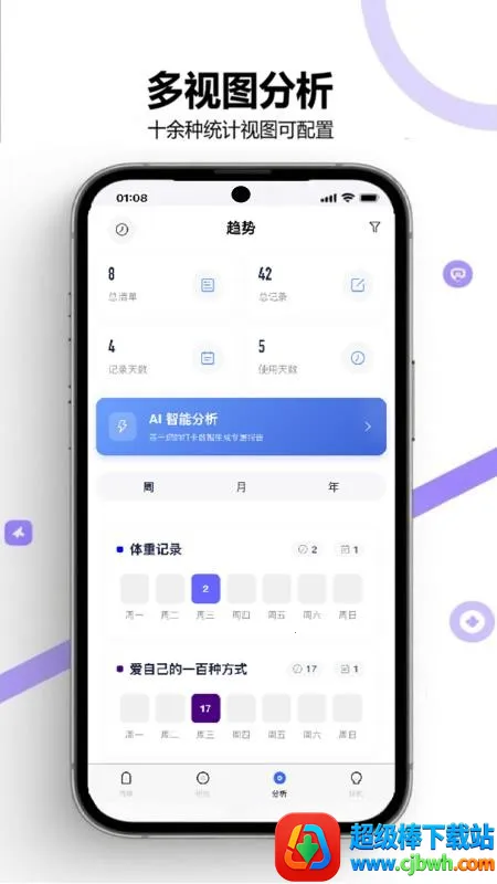 打卡清单官网版app专注清单记录打卡,支持一键记录、自定义清单,有海量模版。能多视图分析打卡趋势,可上传图片、用AI模型。具备自定义模版等特色,跨平台同步,是全能记录助手,界面简洁,操作便捷。