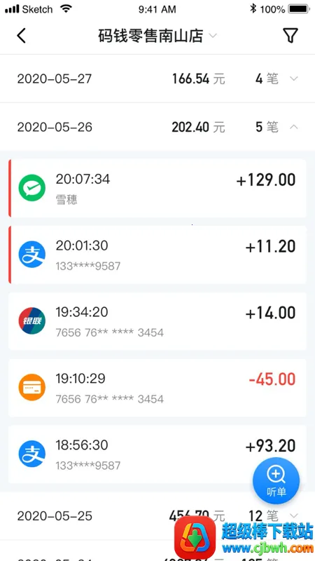 提供便捷的订单管理功能,可随时查看当前订单收入以及每天结算到账金额,还能打开订单点击退款按钮给消费者退款。