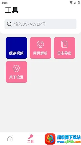 1、如果你想下载B站上的某个视频,打开软件的“工具”版块,然后在顶部的搜索框中输入BV/AV/EP号或者视频链接。