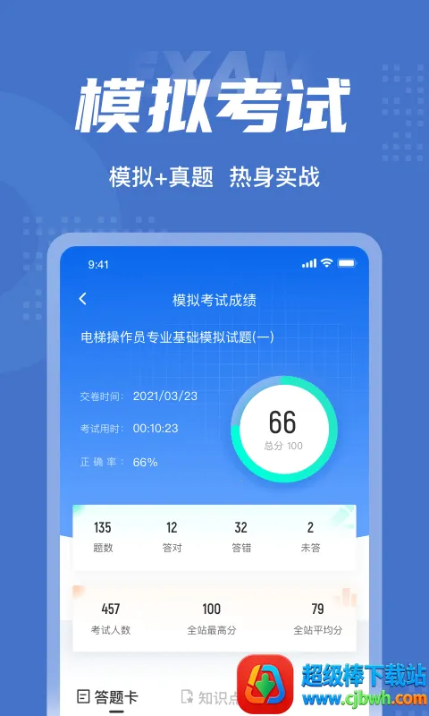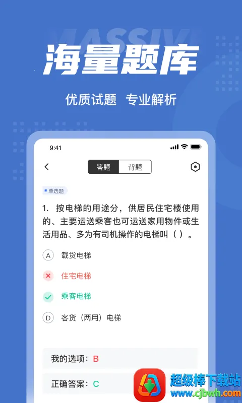 这款软件专为电梯操作员备考设计。它有全面题库资源,含历年真题和模拟题,能还原考试环境,助用户高效复习。可灵活刷题补知识盲点,还提供最新考试资讯。有多种刷题模式,搜题功能强大,支持语音和拍照搜题。能实时记录考试数据,给予考生信心。直播课程免费,还有大数据分析提供精准评估报告。不管是巩固基础还是冲刺提高,都是备考的理想选择。