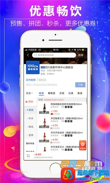 1919吃喝是壹玖壹玖旗下的酒类购物平台,汇集全球上万种美酒。支持个性化定制,19分钟极速送达。还有丰富优惠,新用户领299元礼包。提供订酒订餐服务,满足多元需求,是爱酒人士的便捷之选。