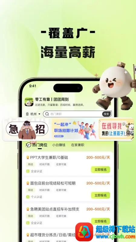 1. 海量兼职:涵盖在校大学生、宝妈宝爸、白领等找副业找工作的人群,海量岗位统统可以满足大家。