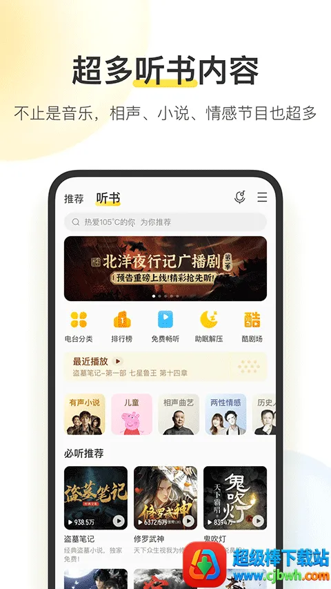 酷我音乐最新手机版功能强大,曲库庞大,涵盖多风格歌曲。有全新3D样式播放器,热门综艺原声、相声评书、有声小说等资源丰富,还能智能推荐歌单,支持个性化定制,设置来电铃声等,带来优质音乐体验。