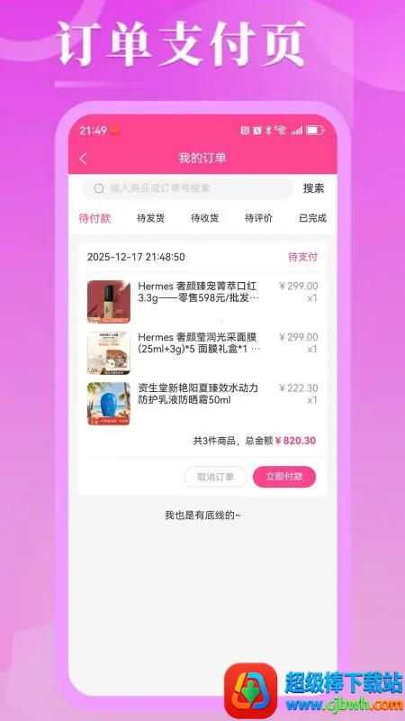 4. 订单详情:详细订单信息在线一览无余,知晓所有历史购物信息。
