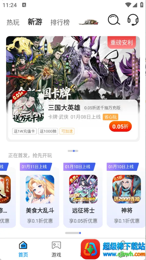 想玩游戏又想省钱?0点1折游戏盒来帮您!它就像一个游戏宝库,汇集了海量优质游戏资源,不管是三国冒险、射击类,还是其他热门类型,应有尽有。这里所有游戏资源更新速度超快,能满足不同玩家喜好。每款游戏都有详细介绍和截图,让您提前了解。而且还有丰厚游戏礼包免费拿,您还能把喜欢的游戏分享到社交平台。