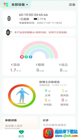 2、可整合分析多项适能数据,像睡眠质量、血氧饱和度、体重等,让用户实时知晓身体状况,制定科学健康计划。