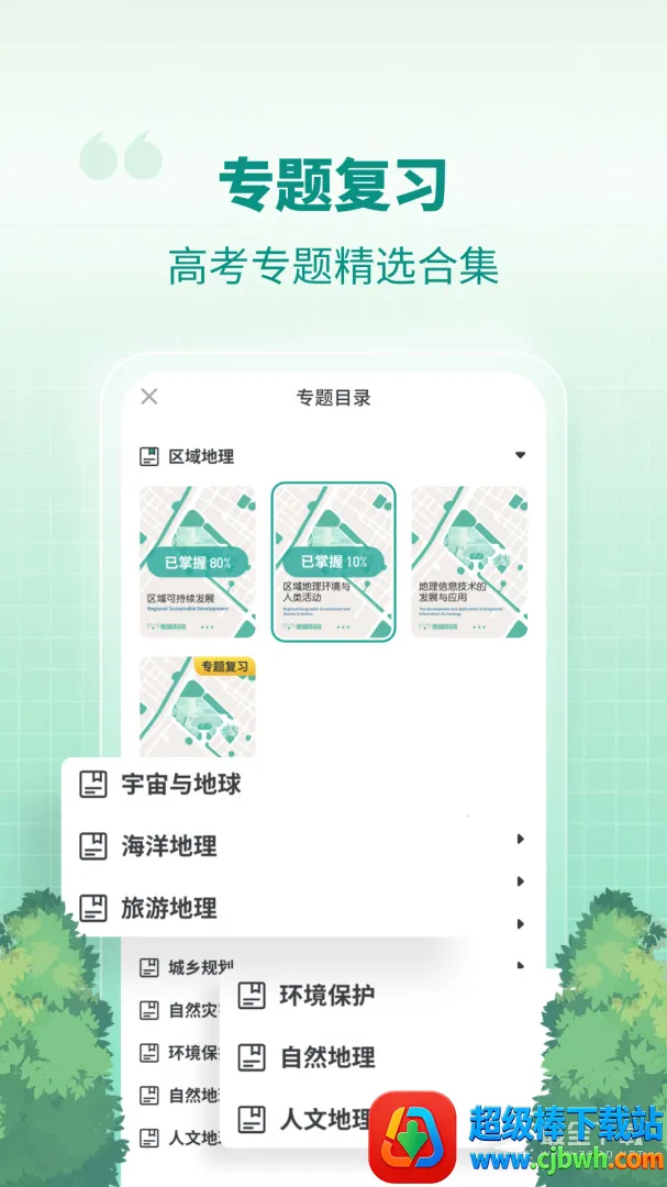 设有历年真题,能让学生检测自己的学习成果,熟悉高考地理题型。