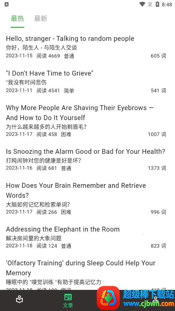 1. 海量阅读资源:覆盖多领域外刊,每日更新,支持双语对照与PDF下载。