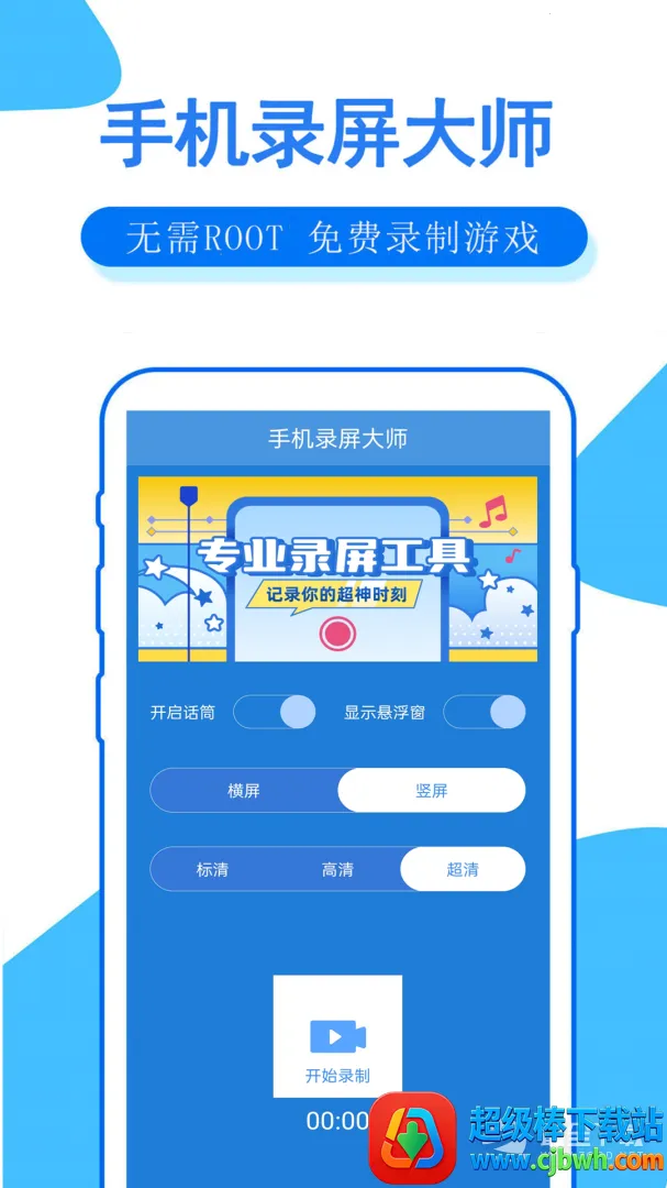 手机录屏大师安卓版是专业手机录屏软件,操作简单界面干净。不限时长录屏,安卓5.0以上免root,支持横纵屏、1080p高清、同步录音,还有强大剪辑等功能,一键分享,是游戏爱好者等的必备录屏工具。