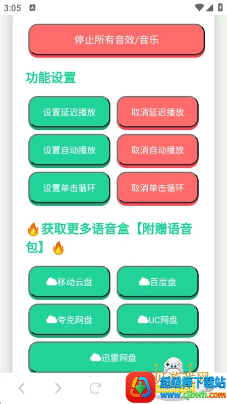 2. 丰富播放设置:支持延迟播放、自动播放、单机循环等功能。点击设置延迟播放按钮,可设置延迟时间毫秒;点击设置自动播放按钮,启用自动播放功能;点击设置单击循环播放按钮,启用单击循环播放功能,还能点击停止所有音效音乐按钮暂停当前播放音频。