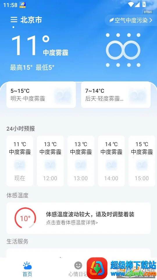 空气质量关怀:实时监测并展示空气质量指数,详细列出各类污染物浓度,让你清晰了解空气状况,根据空气质量合理安排户外活动,关爱自身与家人健康。