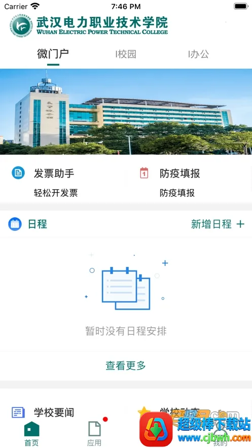 武汉电院app是武汉电力职业技术学院官方打造的校园服务平台,为师生提供线上教育及校园生活服务,涵盖新闻、课表、成绩查询等功能,还有日程管理、一卡通等特色服务,方便校内生活学习与办公。
