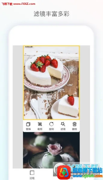 支持设置多种边框样式和边框厚度,还能对单张照片进行剪裁、旋转、添加滤镜等操作。
