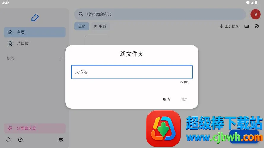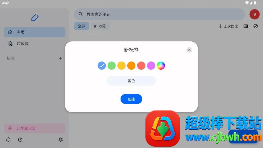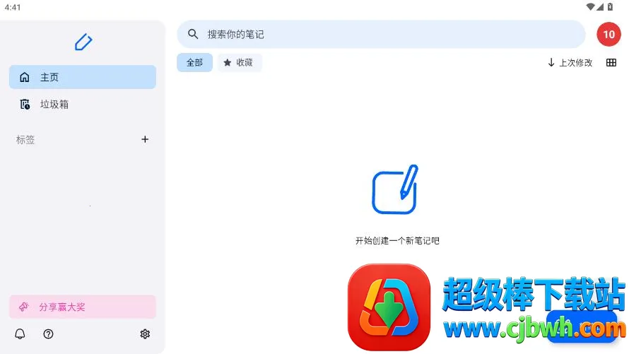 首页支持创建新笔记,并提供搜索收藏和标签分类功能,便于高效管理。