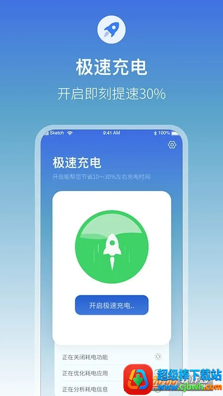 2. 智能极速充电:接通电源打开应用,一键进入快充界面,自动识别并关闭耗电应用,加速优化充电时长,节省充电时间,延长电池寿命。