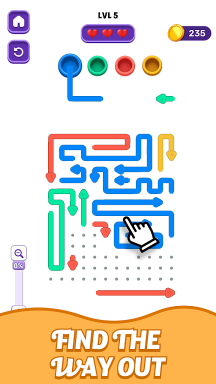 1、逻辑解谜:玩家需引导箭矢进入对应孔洞,通过分析箭矢方向、选择正确进入顺序并避开障碍物来完成关卡,每一关都暗藏精妙图案与挑战,需运用逻辑推理与策略规划解谜。