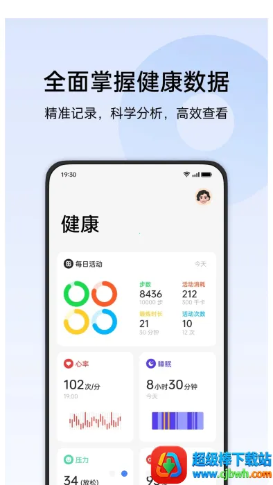 睡眠监测:跟踪用户睡眠质量,记录深度睡眠、浅睡眠及醒来次数,帮助改善睡眠。
